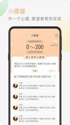 小愿望软件是互联网大数据时代催生的许愿类应用,用户可免费注册使用。其愿景是发展为全球性的许愿与互助平台。