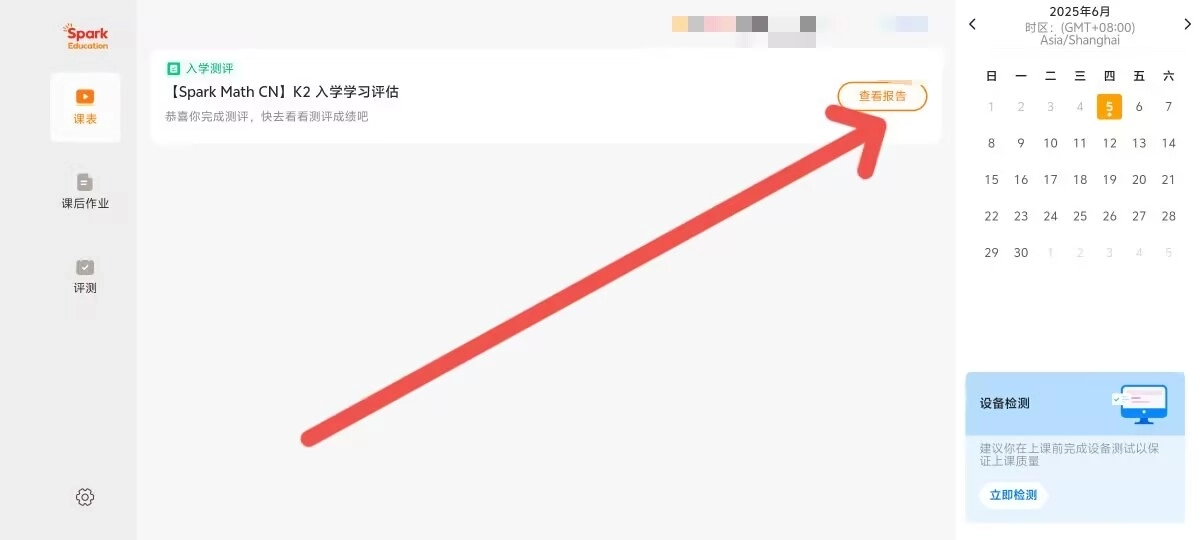 sparkmath学生端怎么查看测评报告