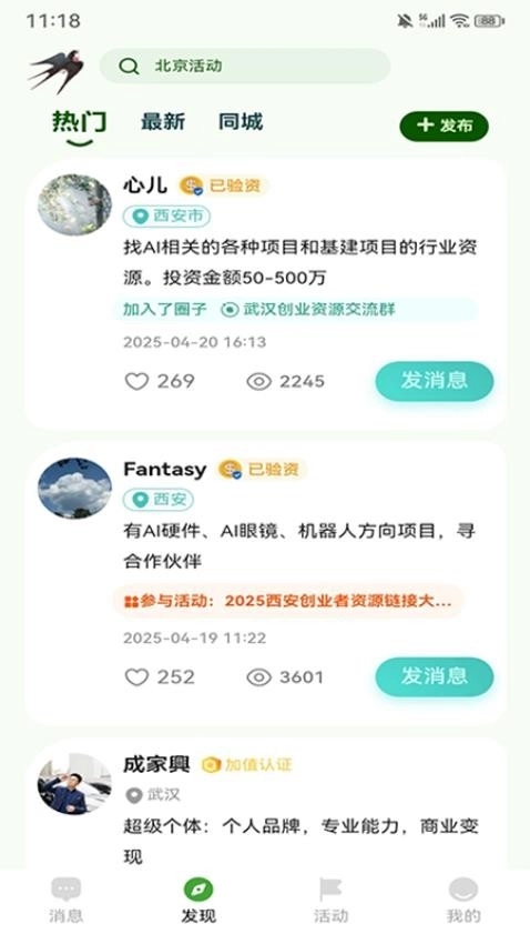 5、动态分享与展示:在动态板块,你可以自由发表观点、分享项目进展,以此激发灵感碰撞,为合作创造更多可能性。