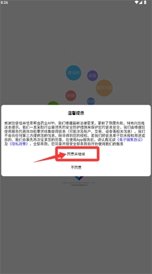 1、启动应用,在提示窗中点选“同意并继续”进行下一步。