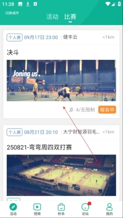 1、在活动页面点击顶部导航栏的【比赛】选项进入比赛页面。