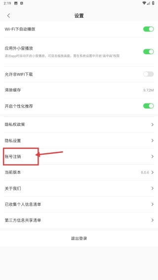 3、进入设置页面后,找到并点击账号注销选项,随即进入注销须知界面。