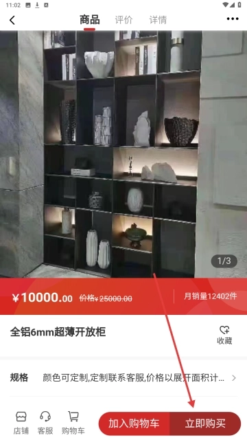 3、在商品详情页,点击底部【立即购买】按钮下单。