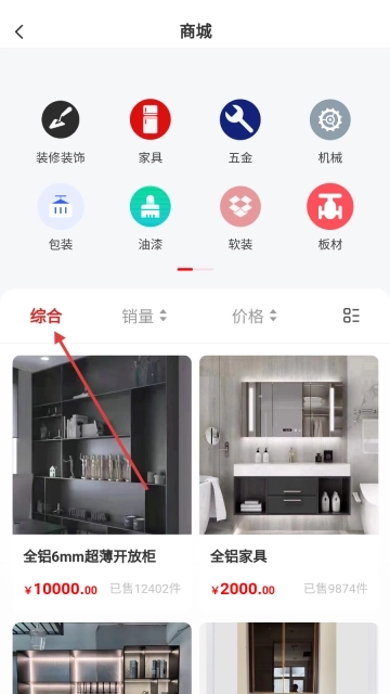 2、进入商城页,默认在【综合】分类下浏览商品。