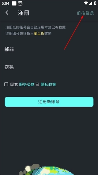3、在注册页面,点击前往登录选项,切换至登录页面。