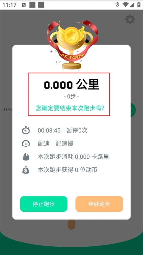 4、接着点击结束按钮,若还想跑则可以点击继续