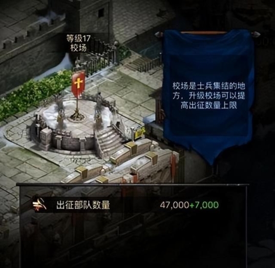 这个修建在游戏内所起到的作用是为咱们添加战役时所出征的那些部队的数量的,假如咱们的这个修建的等级变高了,那么咱们所具有的军队的数量也是会增多的,这个还能为咱们提高自己的一些实力哦。咱们在游戏之中时常会去进行出征战役的,而这个战役最需求的就是那些军力力来协助咱们的,其间哪一方的军力数量多那么它所获胜的概率就会增多的。当然这个军力也仅仅是其间的一部分,但是它所涉及到的层次却也是重要的。当咱们面对战役的敌人实力比咱们要高的话,咱们想要获取是会比较吃力的,其间的军力就能起到要害的作用了,咱们能够依托自己多的军力去弥补咱们的实力。