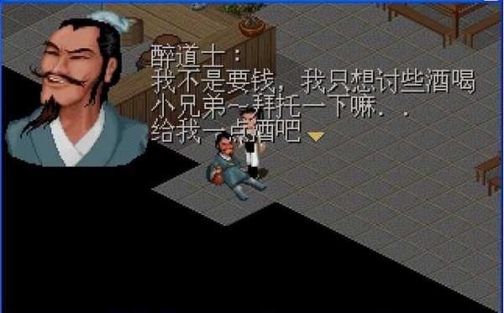 一开始被婶婶敲起来後找找房间有东西可拿,先不要用密道,出房门後可遇到三个苗族的人到楼下门口又遇到一个醉汉要酒喝先不要管他,到厨房去把酒菜拿改楼上有两个人的房间里客人嫌酒太难喝了(没拿尿给他喝不错了),所以把酒收起来,拿给楼下的醉汉,那人本来答应喝一口,但是竟然把酒全喝完了,为了表示歉意就答应传授逍遥(主角)武艺,再到厨房去婶婶拿50元叫逍遥去买虾,於是出门去探险啦!