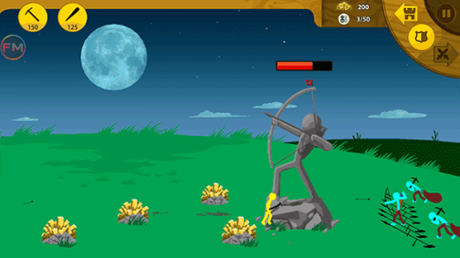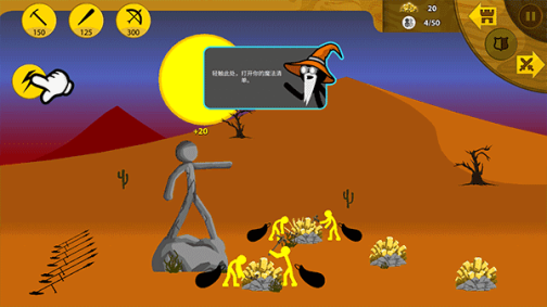 这样我们就能快速获得足够多的矿石,用来召唤更多攻击性火柴人。