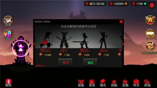 多种火柴人英雄任君选择,盖伦、寒冰、铁拳、刀妹、子龙、武僧,暗影忍者等。