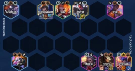 1、阵容构成:加里奥+泰隆+阿利斯塔+希维尔+艾克+佛耶戈+蕾欧娜+迦娜+厄斐琉斯