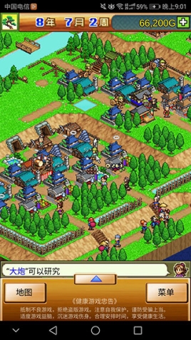 2、并且开辟农地给村民们耕种,经过村落的商人们会来采购农作物,这就是玩家初步的收入来源;
