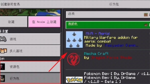 6、接下来返回游戏创建世界,在“资源包”中即可选择刚才下载到的mod模组了。