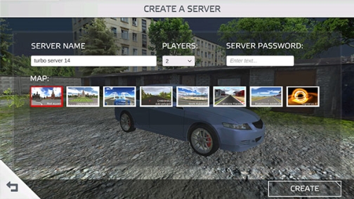 5、然后输入房间名,设好密码和人数,最大32人,并挑选一幅地图,点击CREATE创建就可以了。