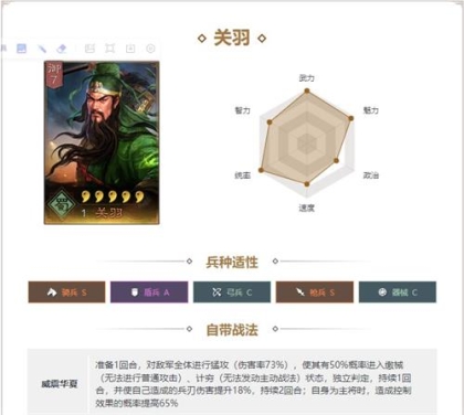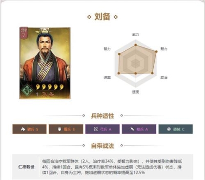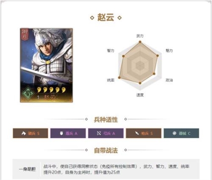 有着全游戏最高武力成长,统帅属性优秀,速度快,是物理阵容的最佳选择