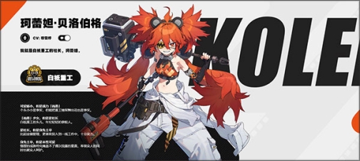 火属性攻击系的角色,一手持刀一手持锤。似乎萝莉配大锤已成为共识,珂蕾妲的爆发很强,打击感很棒,如果喜欢打斗的角色那么珂蕾妲绝对是一个不错的选择,让你能够大展身手。