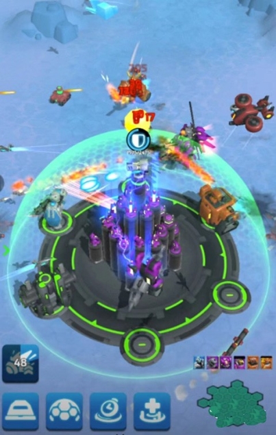 继续使用时间暂停和防护罩来配合反击,同时在防御塔周围放置多个碉堡,这些临时作战单位也可以帮助玩家们持续的进行输出,而boss也会在生命值不断丢失的情况下,被玩家们成功打败。