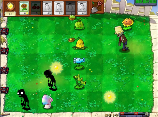 2、开始游戏,推荐种植在中方以免出现僵尸直接暴毙;