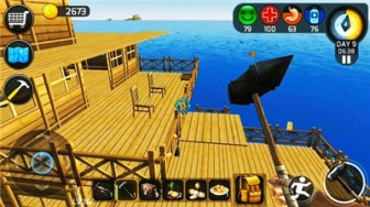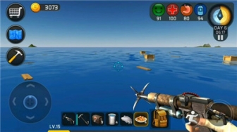 4、用小木板从海里搜取,后期则要制作更加好的装备,打造各种必备物品,逐渐发展木筏面积