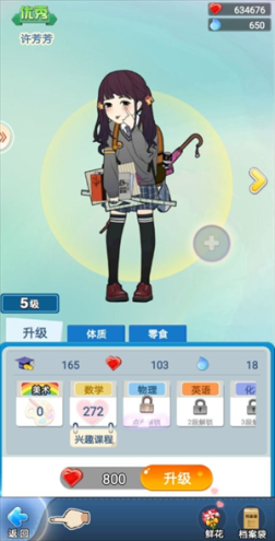 学生头部上方会显示提升后的品质以及所需消耗的补品。补品品质由低到高分别为蔬菜、水果和鸡腿,这类补品均可通过走访、春游获得。