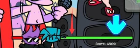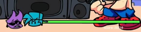 8、在第七周的曲目Stress中,通过游戏失败动画表示,GF确实是一个恶魔,就像她的父母一样(所以都说没有绿色啦)。除了她的红色骨架和尖牙之外,她还隐藏有一对黑色的角。鉴于它们只在这里可见,所以它们可能被藏在她的头发下面。