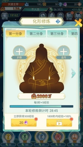 2、修炼多个分身,添加炉鼎和金丹增加升级效率