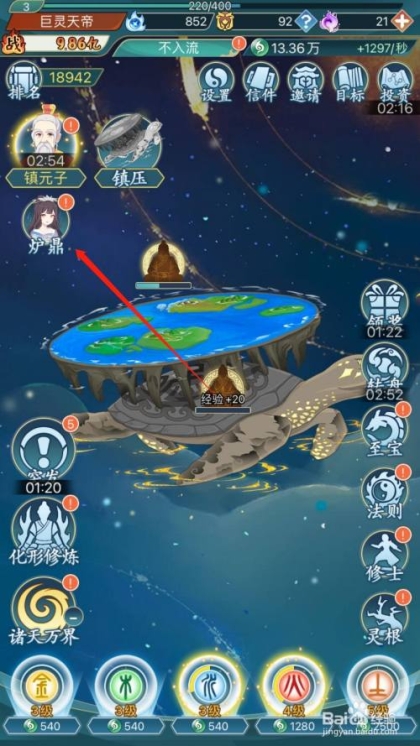 在“天道洪荒模拟器”主界面中,点击下方的“炉鼎”图标。
