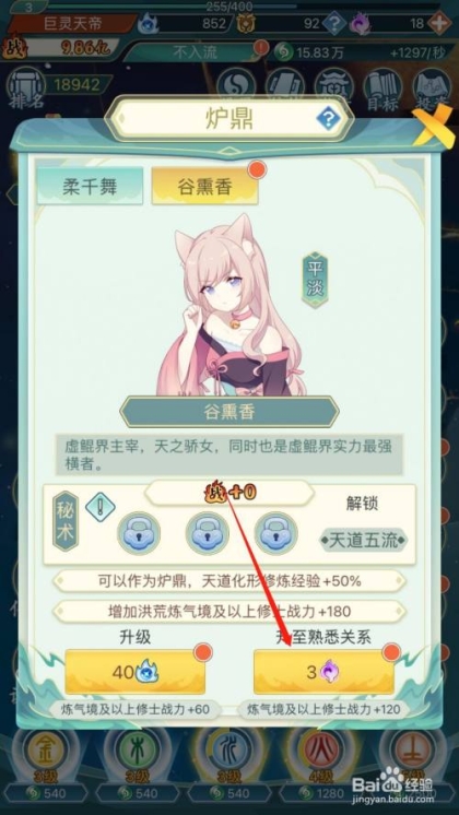 在“炉鼎”界面中,点击下方的“升级关系”按钮。