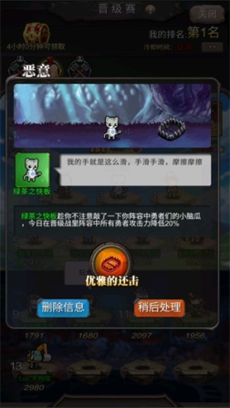 晋级赛不同于其他游戏的PK,在PK前可以对需要PK的对象使用卡牌策略,以减少目标的属性,使得可以更容易获胜。使用卡牌后,对方会收到对应的卡牌信息,从而可以进行报复。所以卡牌也是把双刃剑,请谨记。