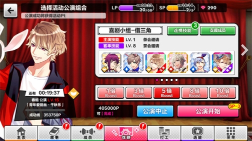 1、玩家将在游戏中扮演一位因机缘巧合下成为了一个剧团的团长和监督,但落魄的剧院仅有你和另一位工作人员,需要招募20位高颜值帅哥演员