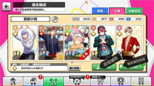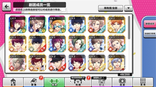 3、抽完先去成员—剧团成员一览里把卡先锁上,每种卡留一张就行了,n、r也先留着,不要分也不要喂,凑排练人数以及刷亲密度把钻石拿了