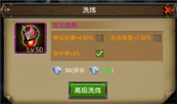 如果对宝物的属性感到不满意,可以对宝物进行洗炼。洗炼宝物会消耗金币。