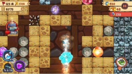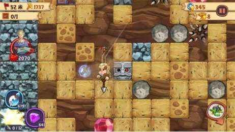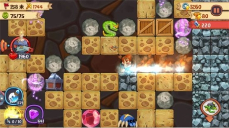 你将进入地下世界,想办法扫除一切阻挡你的障碍。无论是可怕的怪物,坚硬的岩石,亦或者是充满科技感的激光装置,都无法阻挡你前进的脚步!你可以在地底收集到你渴望拥有的一切!宝石、矿物、同伴等都将成为你前进路上的奖励,通过收集各式各样的宝石来作为对抗国王的武器!只有胜利者才配拥有一切!