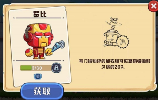 酷儿的学识有限,暂时没有看出来罗比到底是哪部游戏或者电影里面的人物。希望多才多艺的你们不吝指点哦!)罗比的技能也是非常好使用,只要杀死经常出现的加农炮(实际上长得更像电磁炮)就可以恢复鹤嘴锄耐久值啦