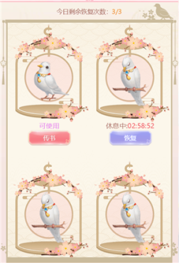 如果没有知己来信,小主亦可点击右下角传书,使用信鸽主动与知己发起话题,当然信鸽也是有休息时间,万一疲劳工作导致送错信了呢~那可就一腔衷情错付咯