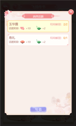 飞鸽传书当然不仅仅只是传情达意,完成话题后可以增加与知己之间的亲密经验和知己属性,亲密度越高的知己,能解锁更多话题哦