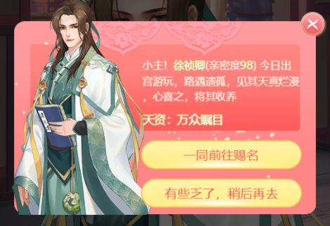 小主结识知己之后,每次密会或暧昧的时候,有几率路拾遗孤,作为双方的义子女,可以在凤光殿-义子界面查看哦。教导义子女成年后,义子女会参与科举考取功名,之后就可以与其他小主的义子女结亲啦~