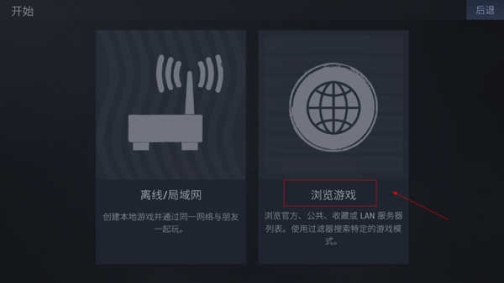 2、点击【开始】,选择【浏览游戏】即可进入服务器选择界面。