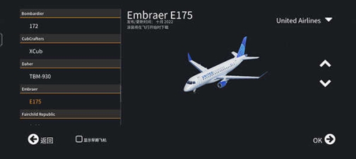 2、左侧是飞机型号,右侧上下按钮可以选择切换飞行型号,选择完点击“OK”。