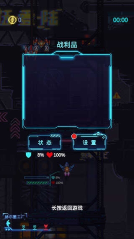 7、长按开始/返回游戏,松手之后可以查看战利品、战机状态或者打开游戏设置。