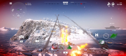 4.细节丰富 船只速度不能突变,比如不能按下后退键后立即倒车,存在惯性,非常真实。岛屿旁边有涨潮,落潮现象。船只会随风浪移动,风浪太大时,甚至会吞没导弹。