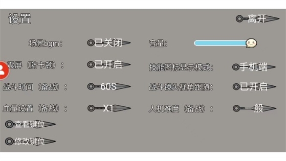 5、进入【设置】界面,我们可以根据自己的喜好进行音量、时间、难度和键位的设置和修改,