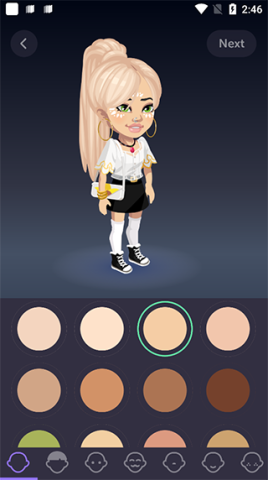 3、在这里,玩家可以自由的搭配角色的穿搭,还以一对角色的肤色、发型、瞳孔、眉毛、鼻型、唇形等做出相应的调整,总之这是一款玩法自由度很高的元宇宙社交游戏,感兴趣的朋友可以试试。