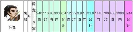 要知道,《大掌门》里的郭靖相当给力,培养成攻防型,再加上萧峰和黄蓉(还有未现身的郭襄),真的很给力,也挺适合非R玩家的。郭靖的强是在他的缘,他的总成长看似一般,但是作为中R来说,节约下有限的培养丹,这样应该能发挥更多的效果。攻击和防御的成长都很不错,后期可以一搏,在武功选择上比较自由。