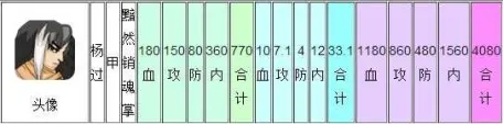 一件乙衣服加一把甲武器就能到3500攻击 2600左右的防 在103级左右!即使没有重剑,杨过也是一样的好用。如果非R要用杨过的话,除了个百战(还不一定能拿到),其它的缘一个都出不了,优点是血战后面作用挺大。杨家虽然缘难出 但靠着出类的成长 及合理的成长属性分布 绝对是小R可以玩得起的。