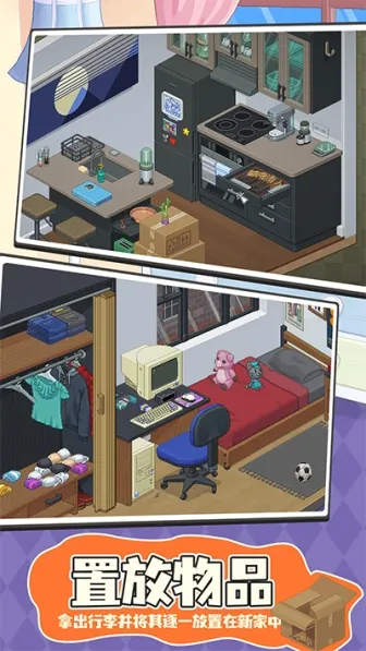 在现实生活中,搬家常常让人感到非常伤感。然而,在“拆箱”这款游戏中,搬家被赋予了一种“禅意解谜”的氛围,变得格外温馨。这是一款以轻松整理为主题的休闲游戏。在游戏中,玩家可以通过整理多次搬家的行李,来了解一位无名主人公从1997年到2018年的人生历程。尽管游戏规则简单,玩家只需将不同物品放置在相应的位置,可以将其视为一款简单的整理游戏,通过简单的操作即可打造出一个干净整洁的房间。同时,这款游戏也展示了电子游戏中叙事方式的一种新可能。