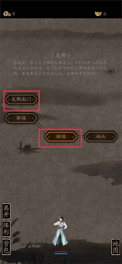 1、进入藏武游戏后,点击地图中的吴郡进入剧情地图