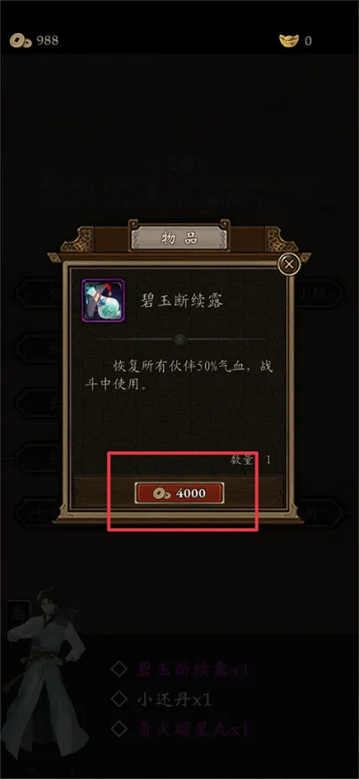 4、剧情中还有各种店铺,例如杂货铺、铁匠铺、药铺等等,可以在这里购买一些物品来提升玩家一定的属性