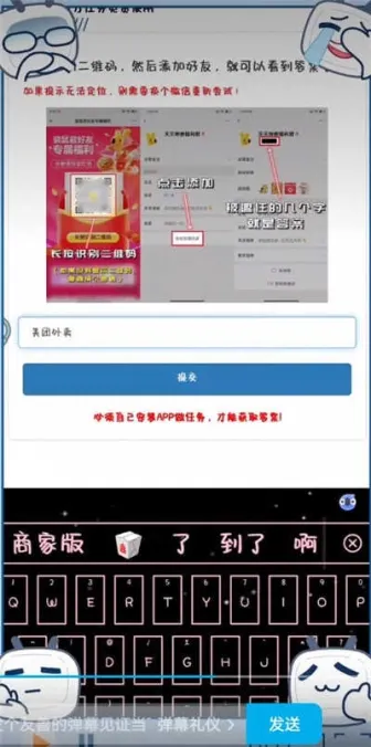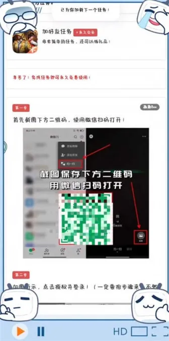4、完成一个任务之后会继续为你加载下一个任务,如下图所示,加好友任务,首先截图下方的二维码,使用微信扫码打开,如图所示,点击授权并登录,一定要按照步骤来,不然没答案