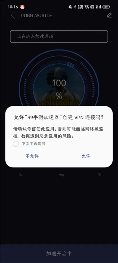 3、并且为了防止用户在玩游戏时加速器闪退,玩家可以自由设置软件的权限,也可以无视不操作。